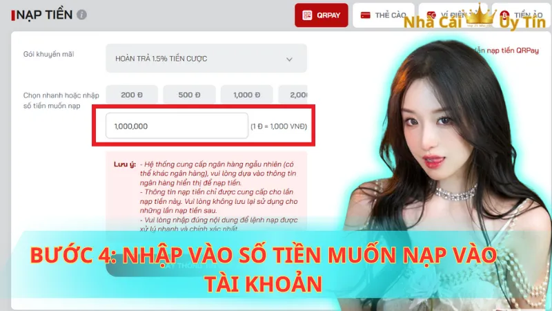 Bước 4: Nhập vào số tiền muốn nạp vào tài khoản